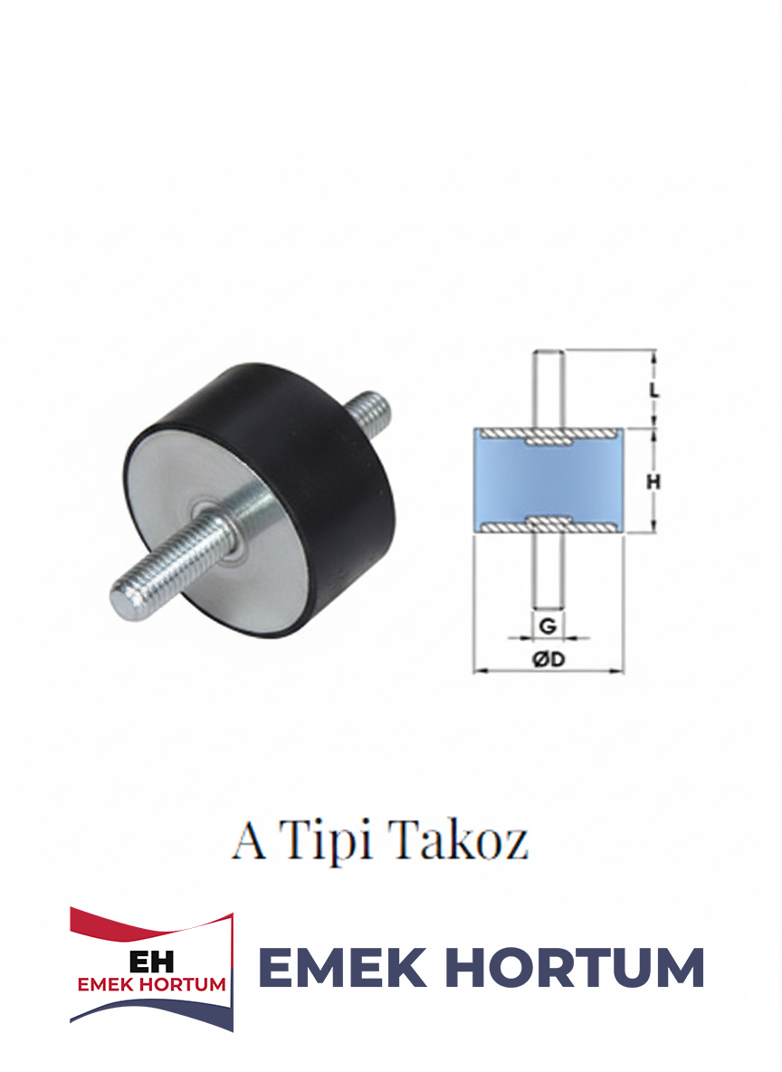 A Tipi civatalı takoz, makine ve ekipmanların çalışma sırasında oluşturduğu titreşimleri ve darbeleri sönümlemek amacıyla kullanılan Civatalı Takozlar grubunda yer alan bir titreşim izolatörüdür. Kauçuk gövde ve metal civata yapısı sayesinde hem sağlam montaj hem de etkili titreşim emilimi sağlar.