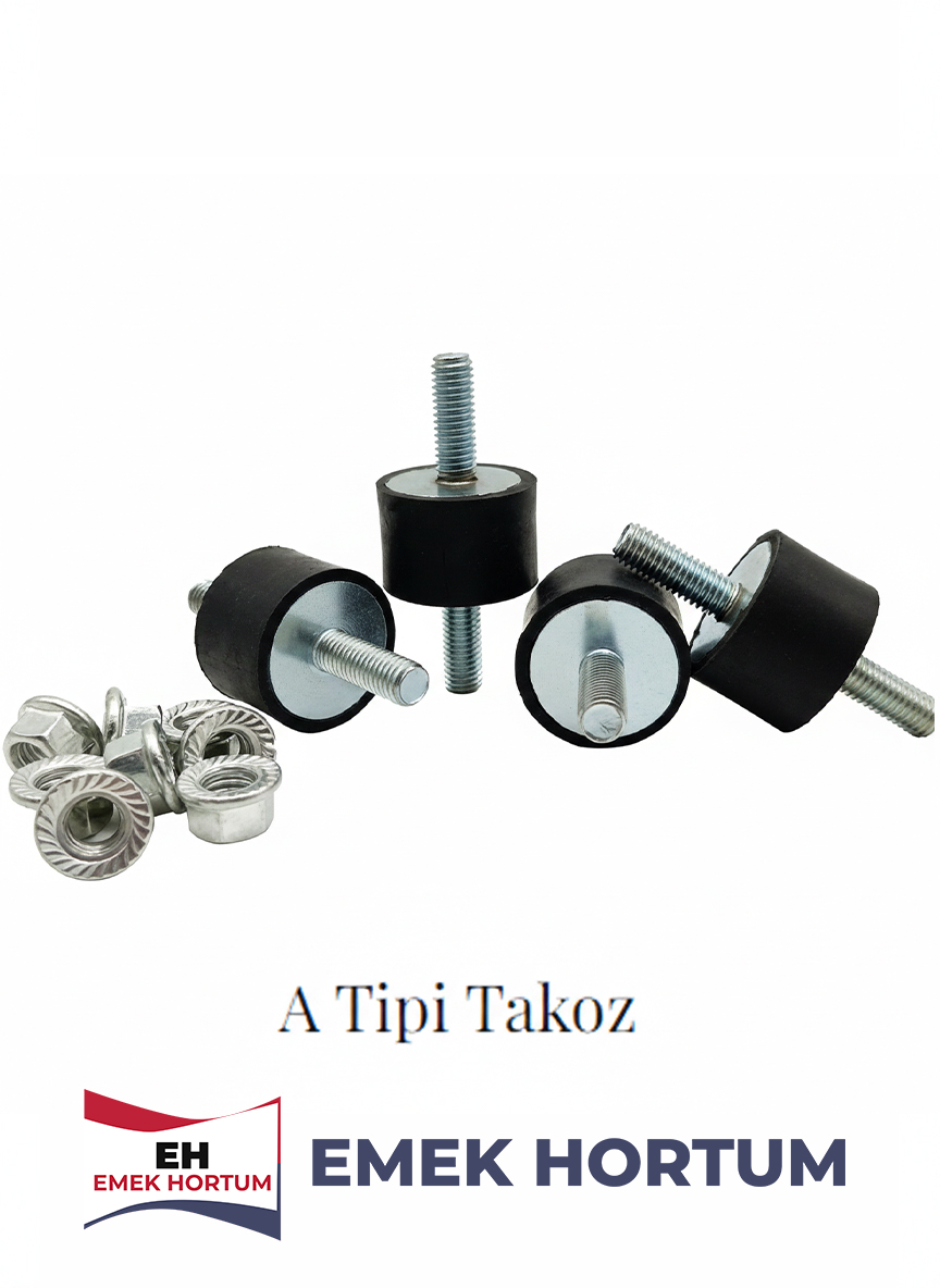 Emek Hortum A Tipi civatalı takoz, makinelerde oluşan titreşim ve darbeleri sönümleyerek sessiz, güvenli ve uzun ömürlü çalışma sağlar.