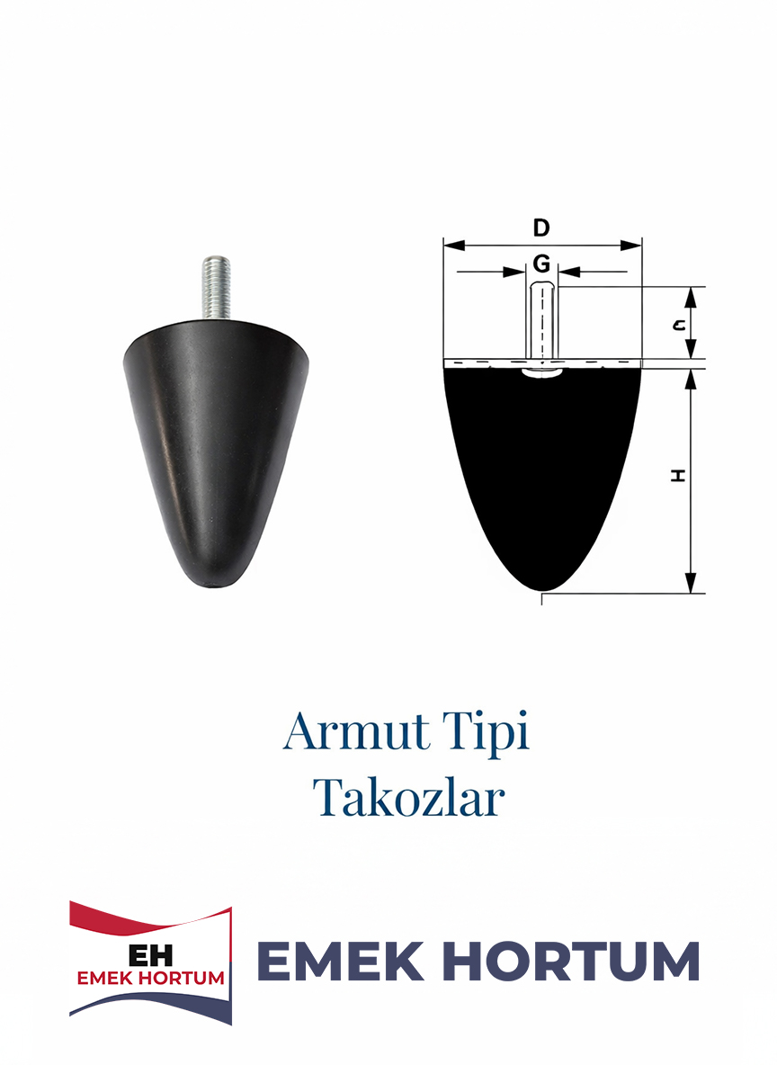 Armut tipi takozlar çalışan sistemler içerisinde yer alan elemanların titreşim nedeniyle birbirine zarar vermemesini sağlayan sistem elemanlarından biridir. Bu takozlar sayesinde çalışan sistemlerde meydana gelen titreşim, darbe ya da çarpma gibi durumlar tamamen ortadan kalkar. Ayrıca sistemlerin daha verimli bir şekilde çalışması ve uzun ömürlü olması da yine armut tipi takozlar sayesinde mümkün olur.