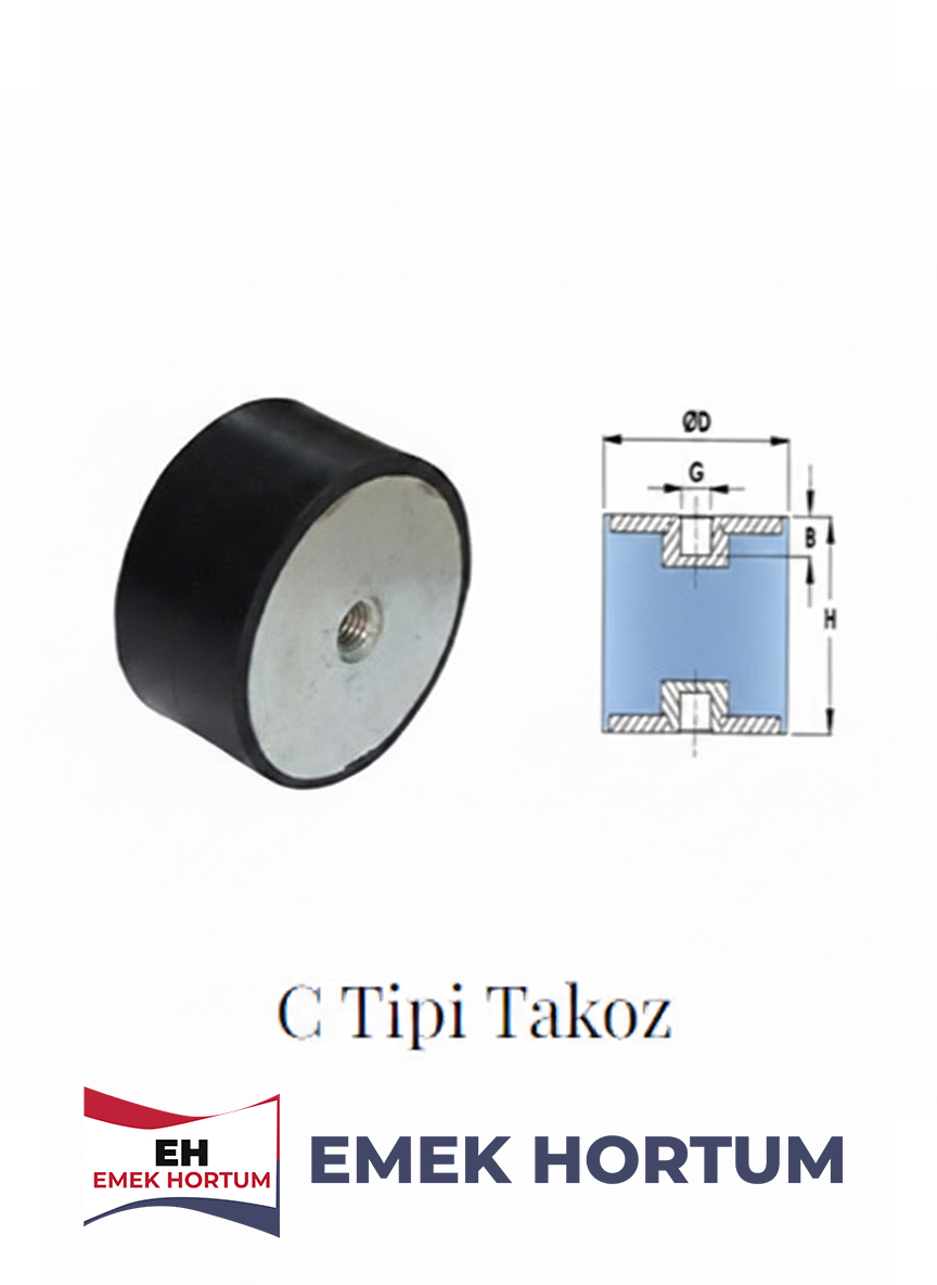 C Tipi civatalı takoz, makine ve ekipmanların çalışması sırasında oluşan yoğun titreşim ve darbeleri sönümlemek için geliştirilmiş özel bir Civatalı Takoz modelidir. Kauçuk–metal yapısı sayesinde titreşimi kaynağında absorbe eder ve zemine iletilmesini minimum seviyeye indirir.