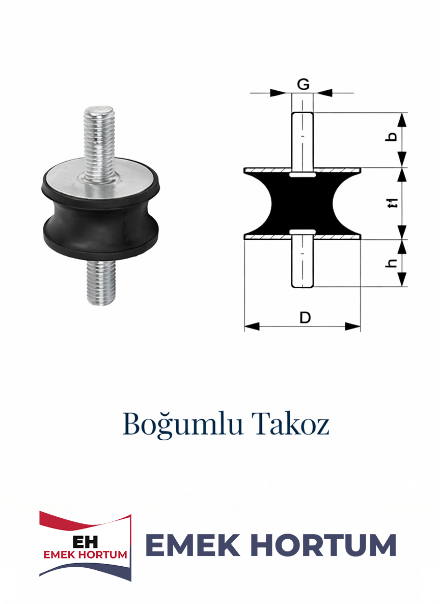 çalışan sistemler içerisinde bulunan titreşimlerin azaltılmasında etkili olan bir başka sistem elemanı olarak karşımıza çıkar. Bu takozlar ile sistemde yer alan ve birbirine bağlı olan elemanları darbe ve çarpma gibi olumsuz durumlara karşı koruma altına almak mümkündür. Kauçuktan üretilen boğumlu takozlar, titreşim ve darbeleri en aza indirger ve bunun yanında gürültü azaltıcı etkileri ile makinelerin daha sesiz bir şekilde çalışmasını sağlar. Bunun yanında hem sistem hem de sistem elemanlarının daha verimli ve uzun ömürlü bir şekilde çalışması da yine bu tip takozlar sayesinde olur.